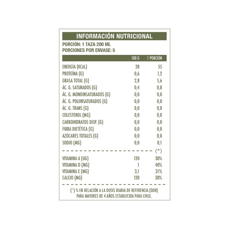 Modo de consumo: Disfrútala sola, en café, batidos, smoothies, cereal, o como reemplazo de la leche tradicional en recetas dulces y saladas. Agitar antes de consumir.