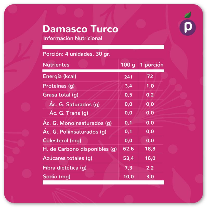 Los damascos turcos, también conocidos como orejas de oso, pertenecen a la familia de las frutas deshidratadas, de ahí su intenso sabor dulce producto de la concentración de todos sus nutrientes.
